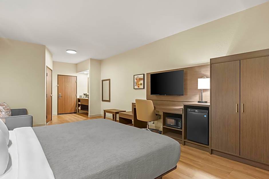 This nonsmoking room features a microwave, refrigerator and flat-screen cable TV.